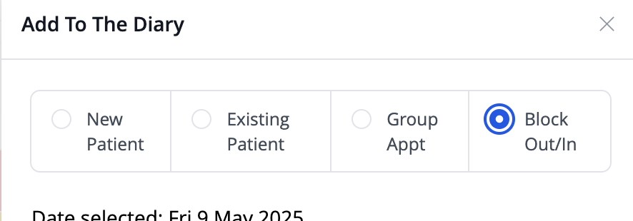 There are two ways to block in a practitioner's time for things like covering another practitioner etc. In iconpractice these are referred to as "Annotations". The quickest way to enter one or two annotations for a single practitioner is to click in time slot which will be the start of the annotation and select "Block Out/In":