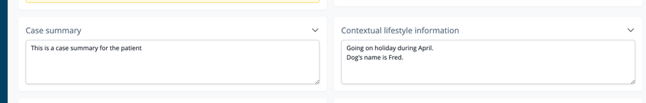 The next section contains the Case summary and Contextual lifestyle information for the patient.