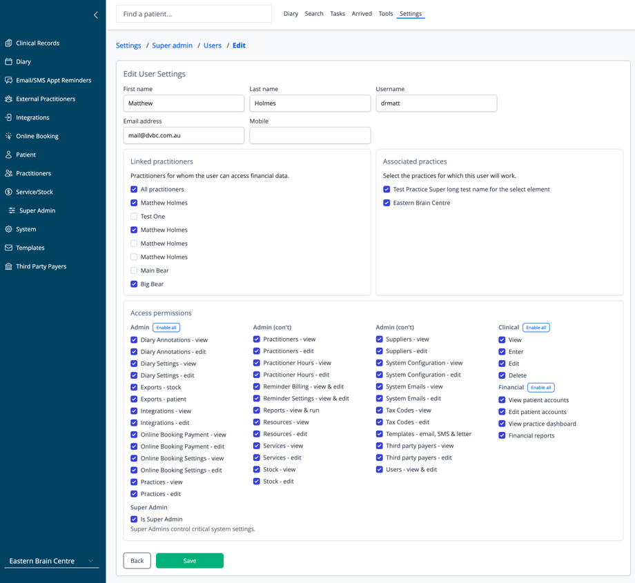 - Adjust linked practitioners access