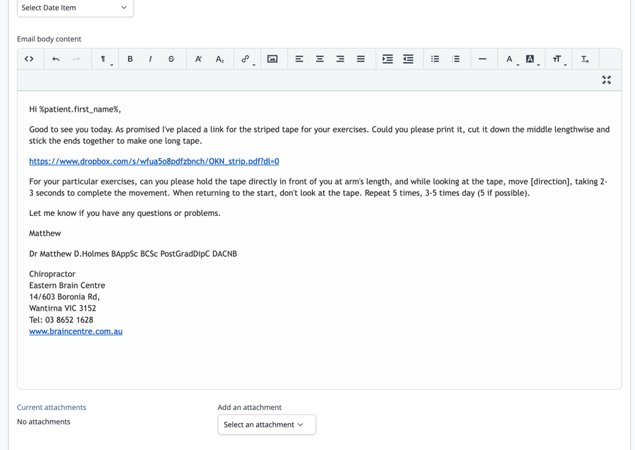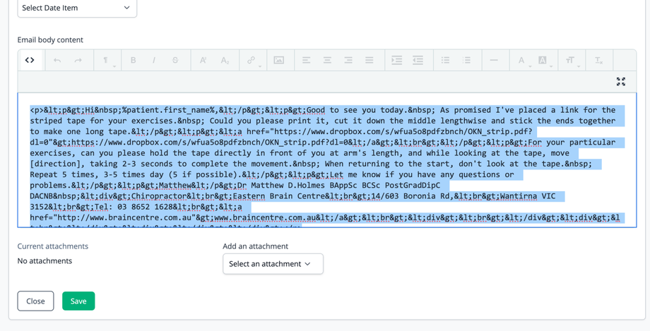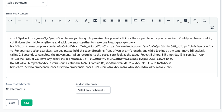 - Important: Note that appointment-related placeholders will only work if the email is sent in relation to an appointment