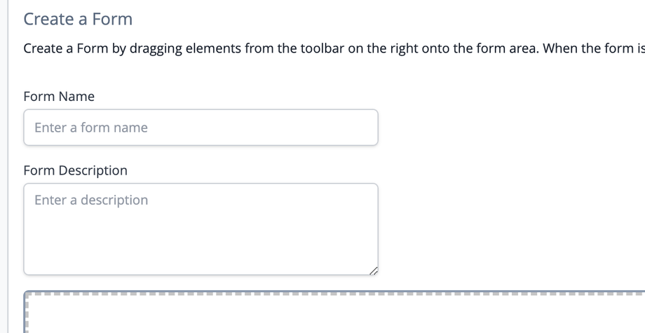 To create a new form, click the ad form button. Once, on the form page, enter a name for the form, and a description.