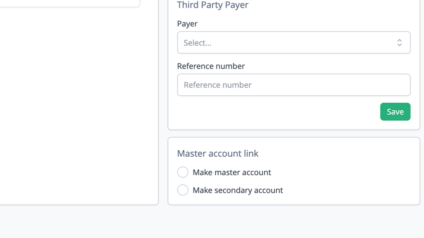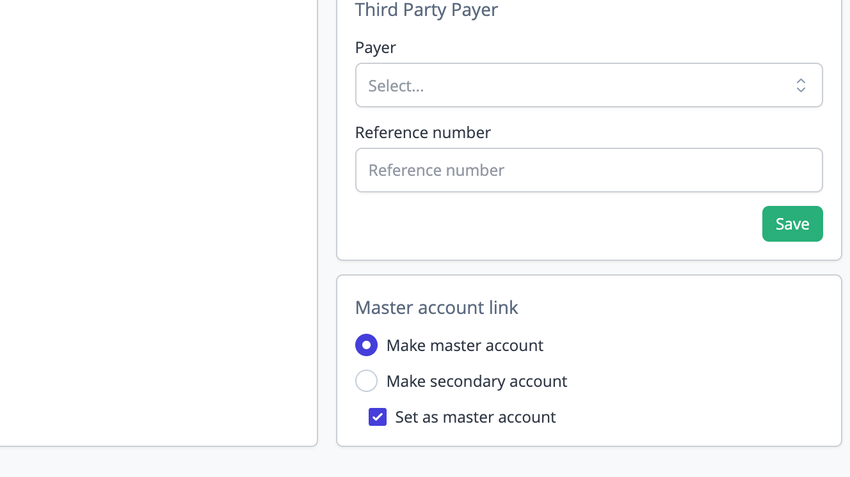 To make a patient a Master account holder, select the "Make a Master Account" radio button, then tick the "Set as Master Account" tick box. That person is now a Master account.