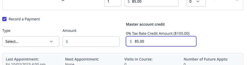 Tip: when processing a health insurance payment, before applying any available credit enter the health insurance payment in the left area as normal, then click in the available credit box and it will calculate the correct amount outstanding (up to the limit of any available credit).